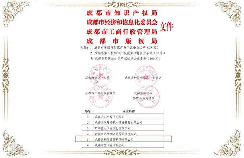 成都市知識(shí)產(chǎn)權(quán)試點(diǎn)企業(yè)